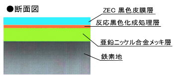 いままで不可能とされていた完全クロムフリーの黒色コーティングが誕生いたしました。「ツヤなし」と「ツヤあり」2種の外観と高い防錆性能を持ちます。