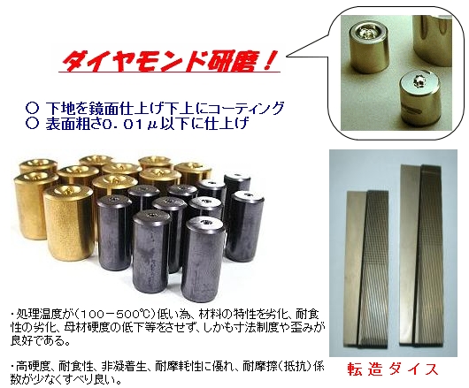 DLC処理:表層部に炭素系皮膜(約2μ程度)をコーティングする Hv 3500